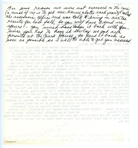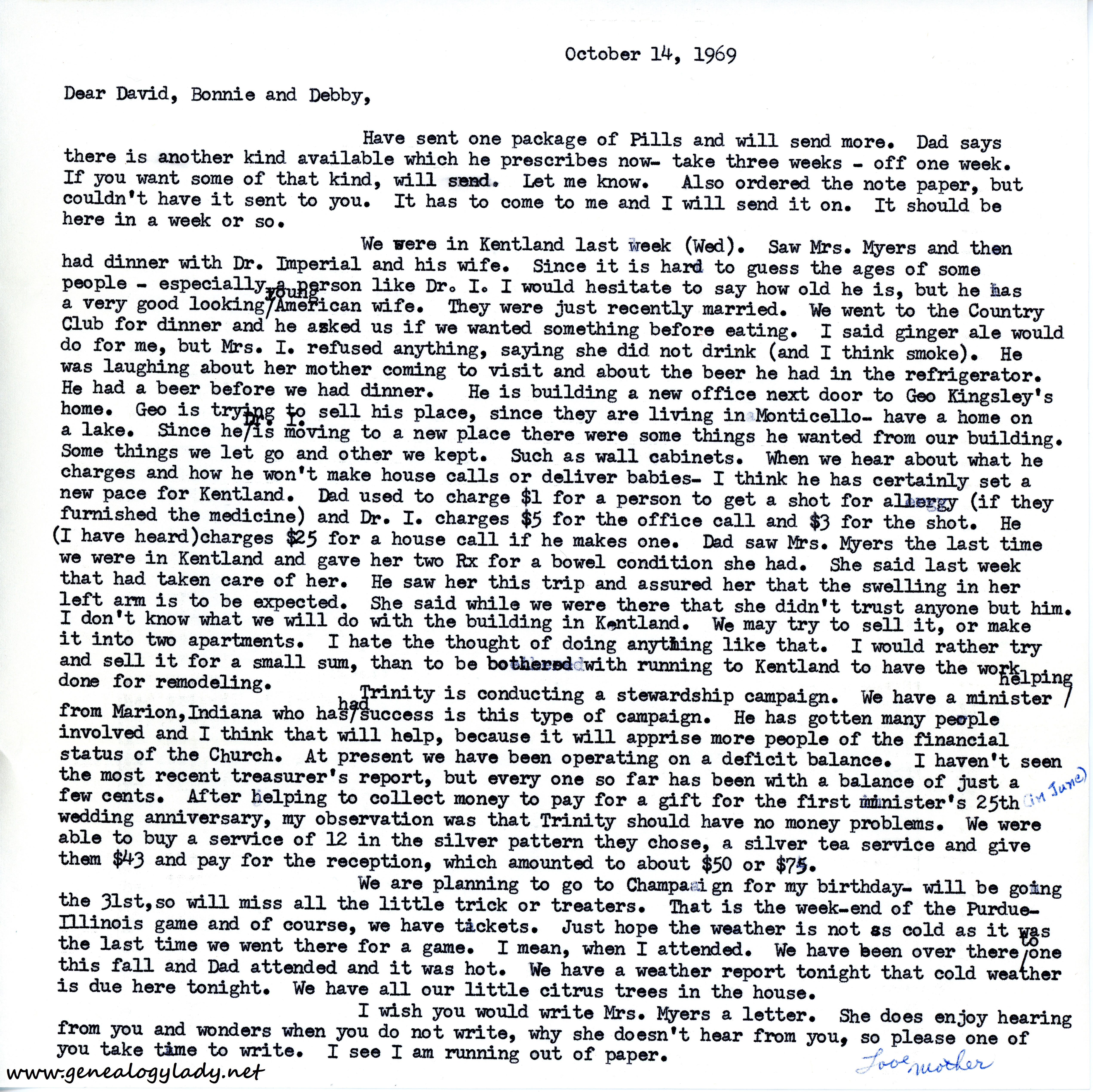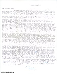 When I get to Kentland, I read your letters to Mrs. Myers and knew from them that you were planning to come to Indiana for Christmas. While reading and catching up on news from you I had a thought. Why don’t you make a carbon copy when you write to her—using this kind of paper and send me a carbon each week. The only extra effort it would require would be an envelope and a six cent stamp. How about? If you will send me the carbons (copy), I will write to you each week. Fair deal?