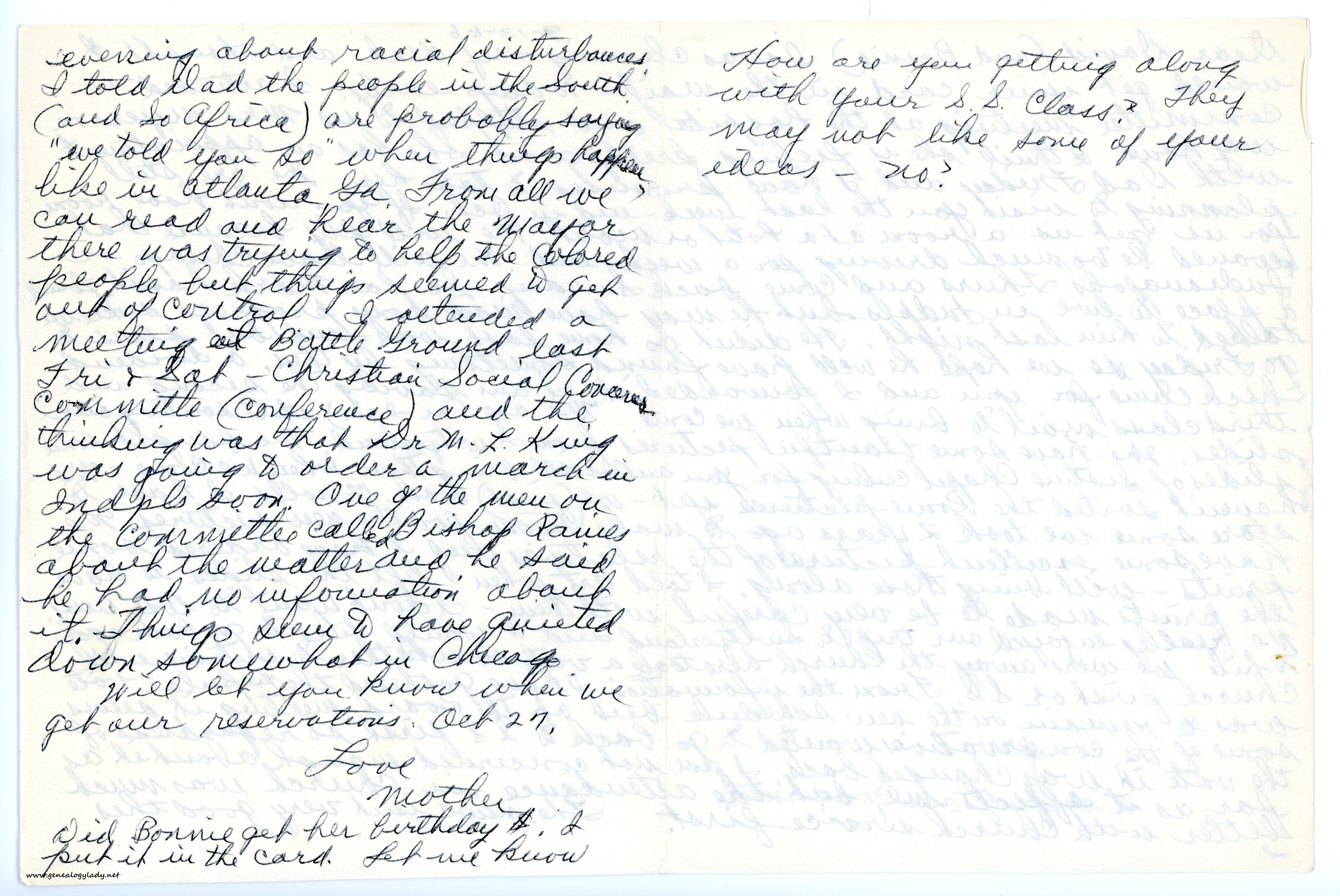 We haven’t made a decision about where we will live in Lafayette. I have looked at apartments – a brand new one on the by-pass – looked at it last Thurs. – costs $175 a month for 4 small rooms. I told Dad it would be like living in a cell. I told the family over the weekend we would live I a motel room if necessary until we can find something suitable. John didn’t think that would be very wise, since we would have to pay about $15 a day for rent. I don’t want to sign a lease for a year at $175 or more a month. I would rather be putting that into a home. I found a place for sale last Thurs. It was a house with a full basement and four bedrooms. It was a nice place. I don’t think Dad would want to put $37,900.00 into it and that was the asking price.