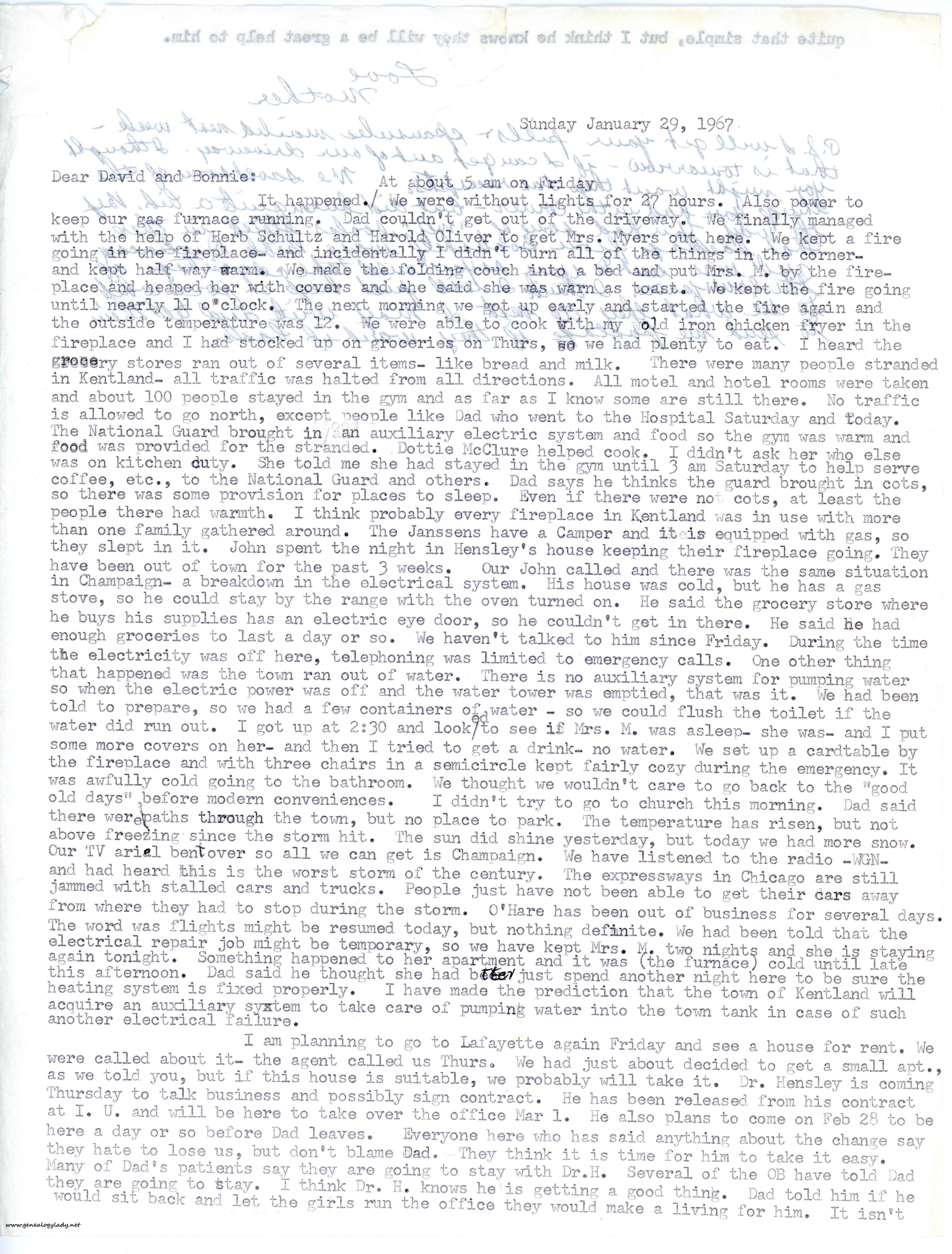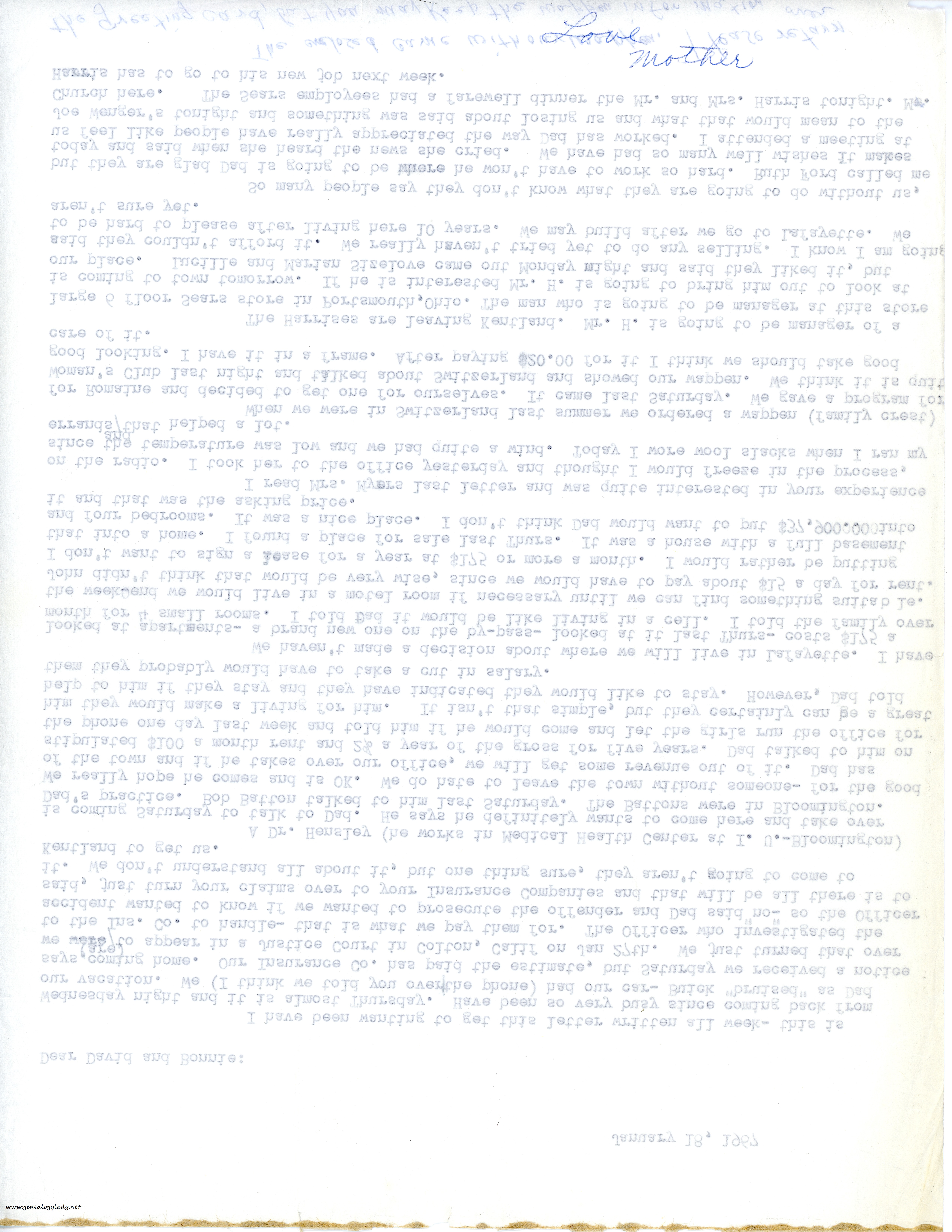 A Dr. Hensley (he works in Medical Health Center at I.U.-Bloomington) is coming Saturday to talk to Dad. He says he definitely wants to come here and take over Dad’s practice. Bob Batton talked to him last Saturday. The Battons were in Bloomington. We really hope he comes and is OK. We do hate to leave the town without someone – for the good of the town and if he takes over our office, we will get some revenue out of it. Dad has stipulated $100 a month rent and 2% a year of the gross for five years. Dad talked to him on the phone one day last week and told him if he would come and let the girls run the office for him they would make a living for him. It isn’t that simple, but they certainly can be a great help to him if they stay and they have indicated they would like to stay. However, Dad told them they probably would have to take a cut in salary.