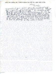 I have been wanting to get this letter written all week – this is Wednesday night and it is almost Thursday. Have been so very busy since coming back from our vacation. We (I think we told you over the phone) had our car – Buick “bruised” as Dad says, coming home. Our insurance company has paid the estimate, but Saturday we received a notice we are to appear in a Justice Court in Colton, Calif., on Jan. 27th. We just turned that over to the Insurance company to handle – that is what we pay them for. The officer who investigated the accident wanted to know if we wanted to prosecute the offender and Dad said “no” – so the officer said, just turn your claims over to your insurance companies and that will be all there is to it. We don’t understand all about it, but one thing sure, they aren’t going to come to Kentland to get us.