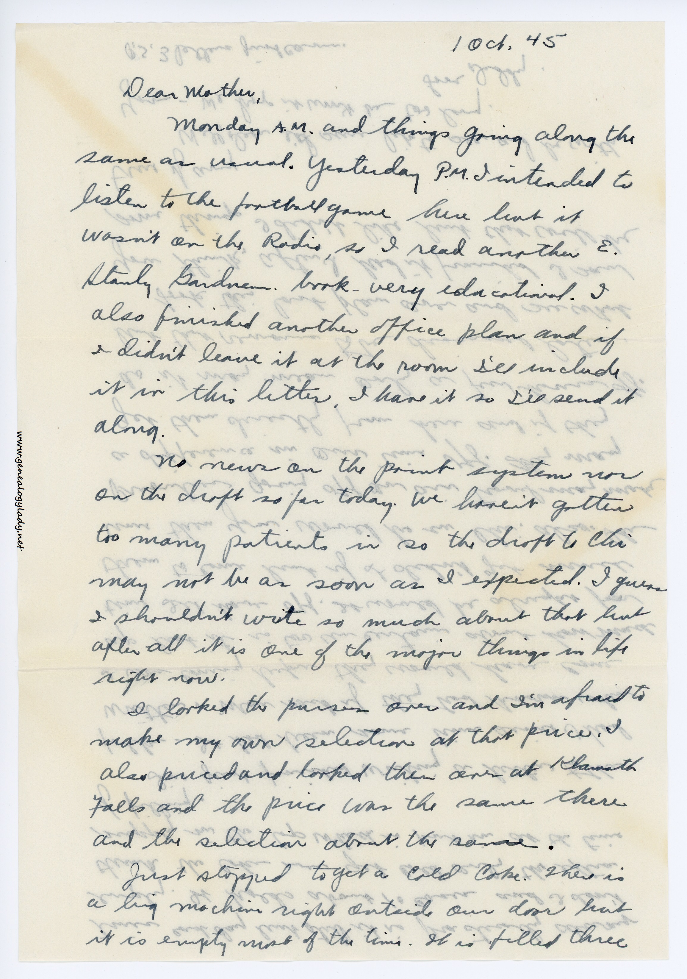 [Editor’s note: This is the last letter in the World War II collection, and the last from the 1940s. There are many, many hundreds of letters from the 1960s and beyond. I am currently working to finish the next volume of World War II letters titled Lots of Love, Daddy. This volume covers the letters written during the fall of 1942. I will currently be taking a short break from daily blog posts in order to finish the book. Stay tuned for more information regarding the book’s release and the next batch of letters from the family archive.]