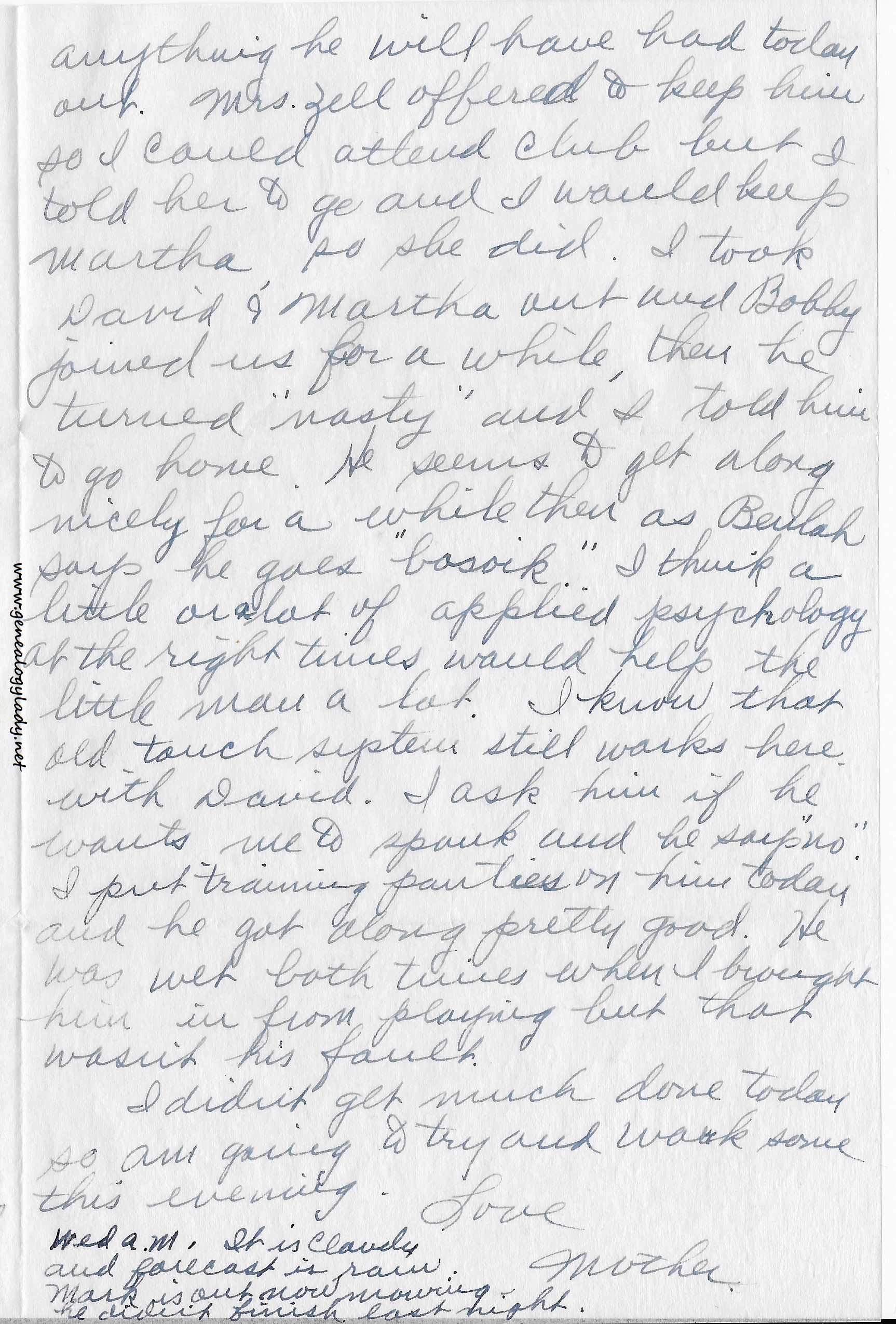 – – It was time to start lunch when I got thru with the clothes. I cooked beans with pork ribs – not trying to make you homesick. Lucile called me about going to Cosmopolitan Club so guess we will take the children and go.
