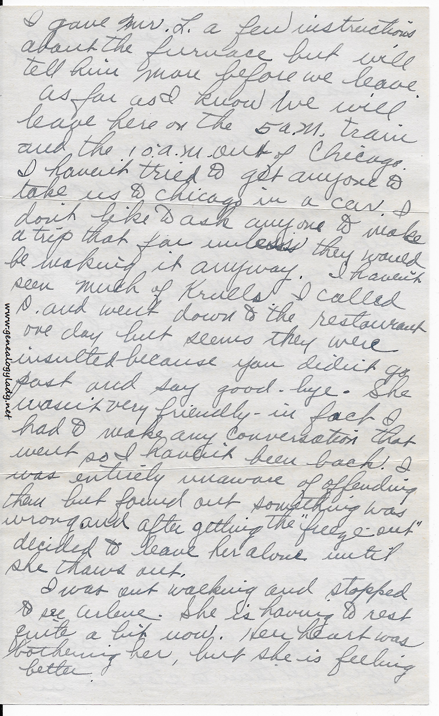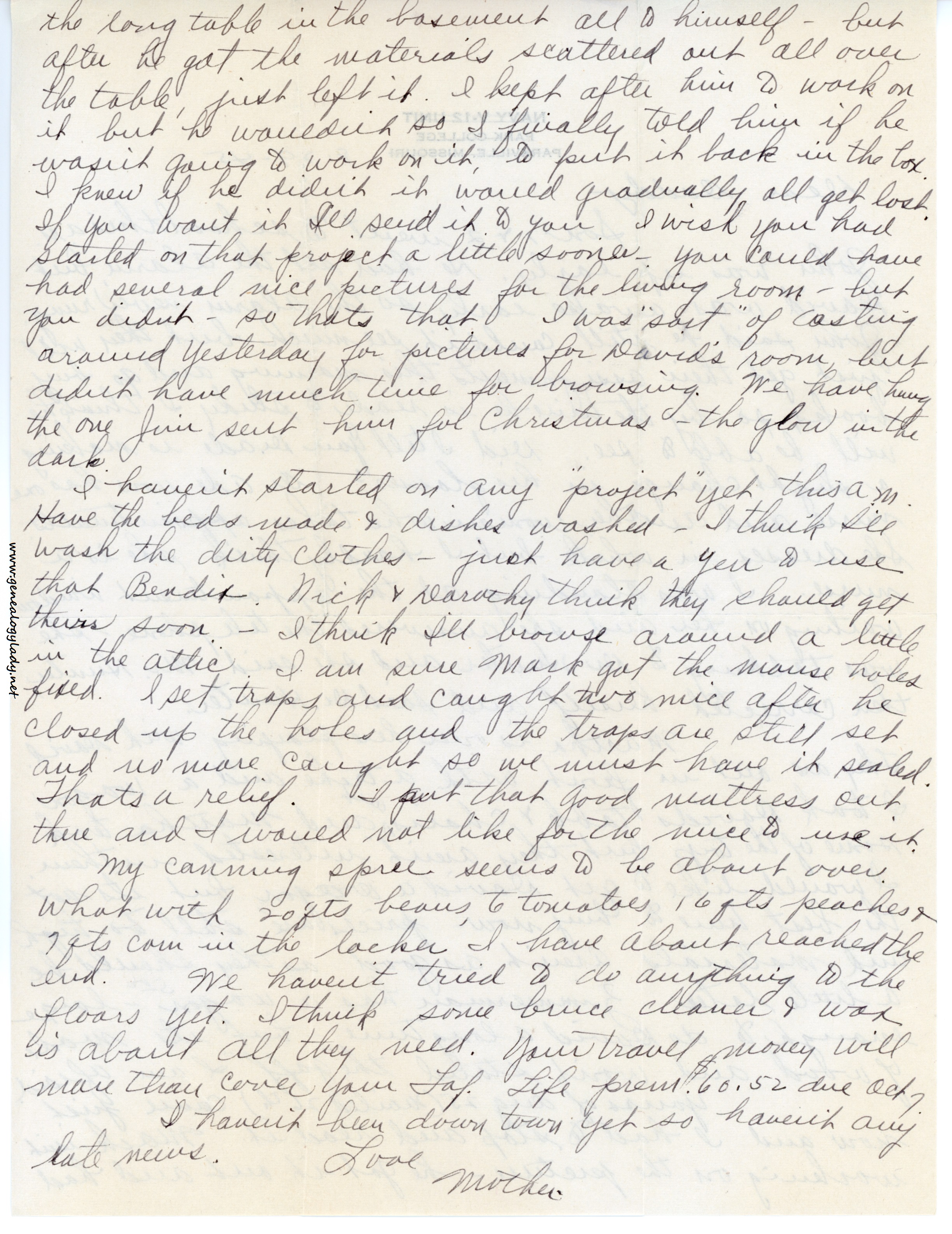 [page 2] is averaged about $10.00 a month for 7 months. Nick said it would probably cost you more if he furnished it, but I think it would be worth it. Nick said again today he would like to get Mildred out of that back room.