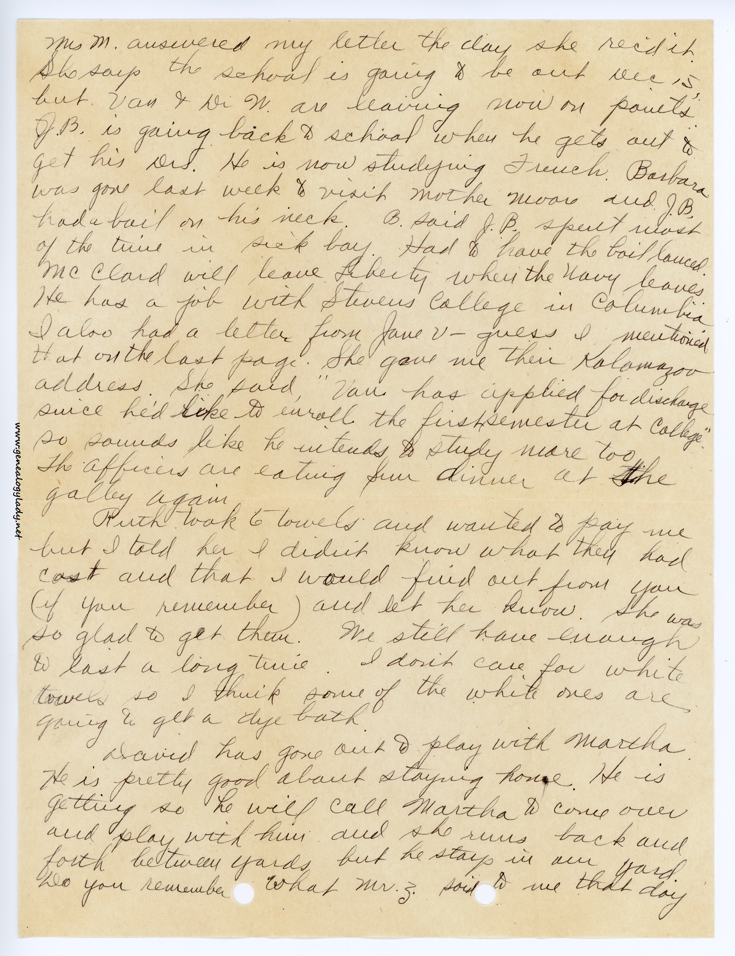 [page 3] grinned a little so maybe he was exaggerating a little. John has gone to see “Wilson” tonight. He said he wanted to see it again and figured this was the best night to go. Tomorrow night is the ball game.