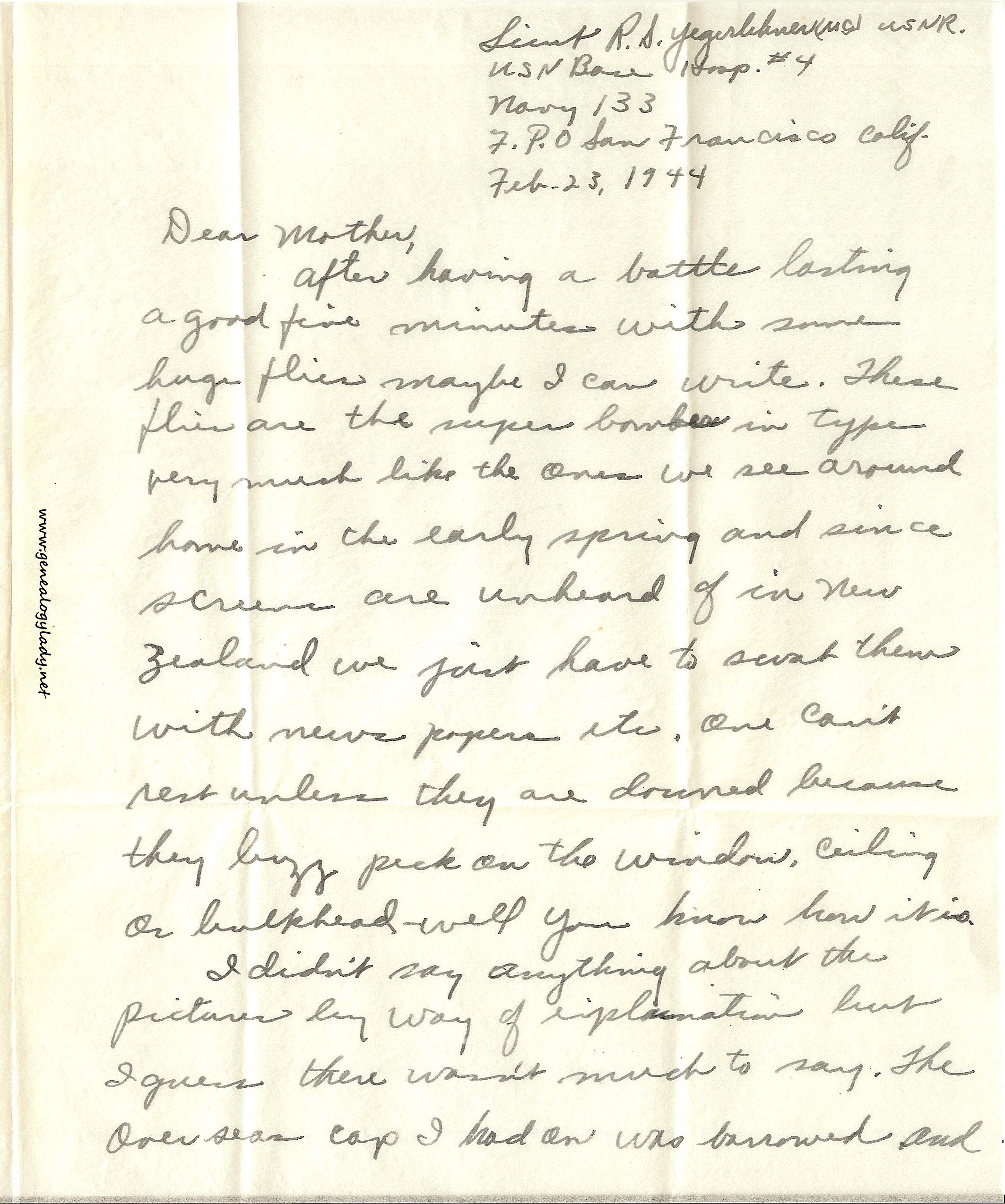 After having a battle lasting a good five minutes with some huge flies maybe I can write. These flies are the super bomber type, very much like the ones we see around home in the early spring and since screens are unheard of in New Zealand we just have to swat them with newspapers, etc. One can’t rest unless they are downed because they buzz peck on the window, ceiling or bulkhead – well you know how it is.