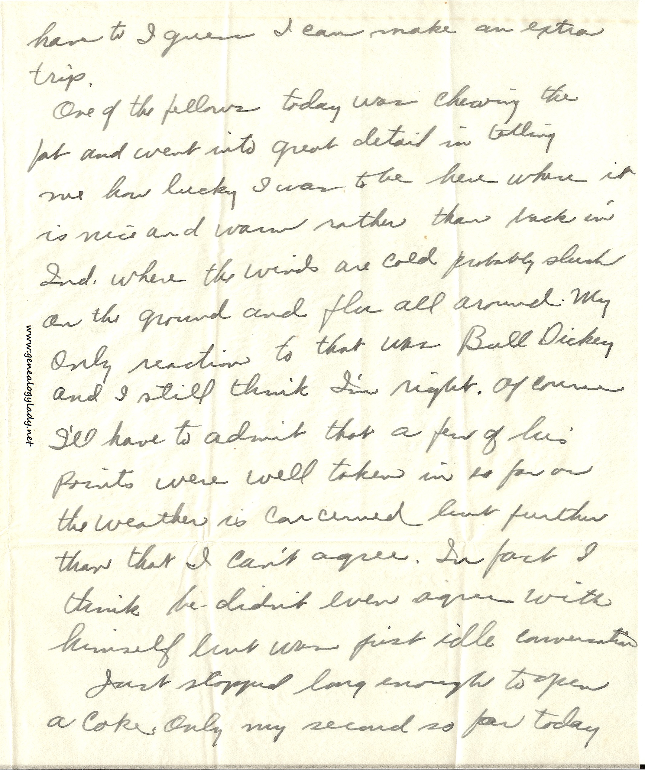 [page 2] my blue suit looked as if I had slept in it but I hadn’t. It really hadn’t been pressed in a long while. The one picture of myself I thought best was the one when I was sitting in the doorway. Really I think that one flatters me and it doesn’t look too good at that.