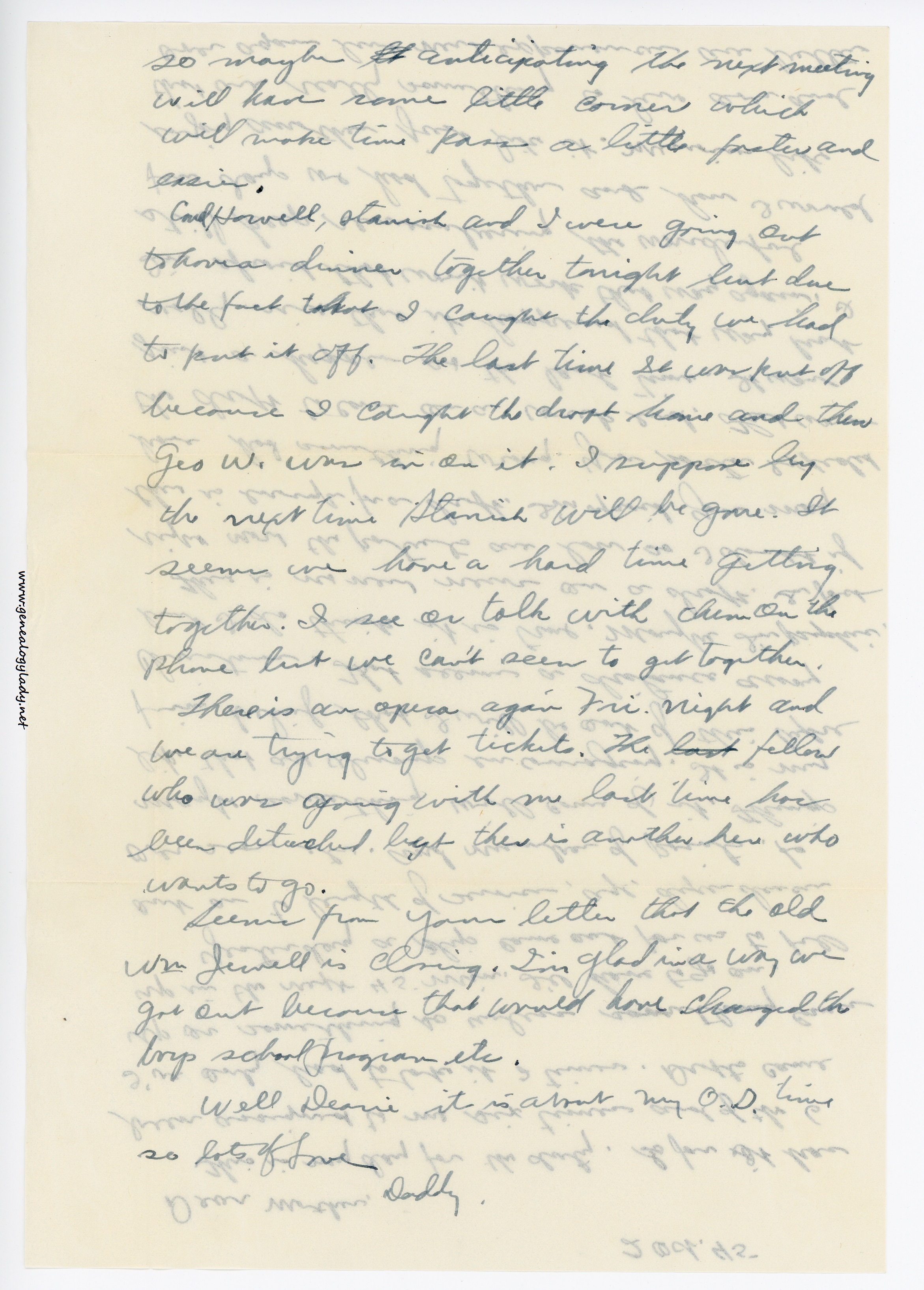 Cmd. Howell, Stanich and I were going out to have a dinner together tonight but due to the fact that I caught the duty we had to put it off. The last time it was put off because I caught the draft home and then Geo. W. was in on it. I suppose by the next time Stanich will be gone. It seems we have a hard time getting together. I see or talk with them on the phone but we can’t seem to get together.