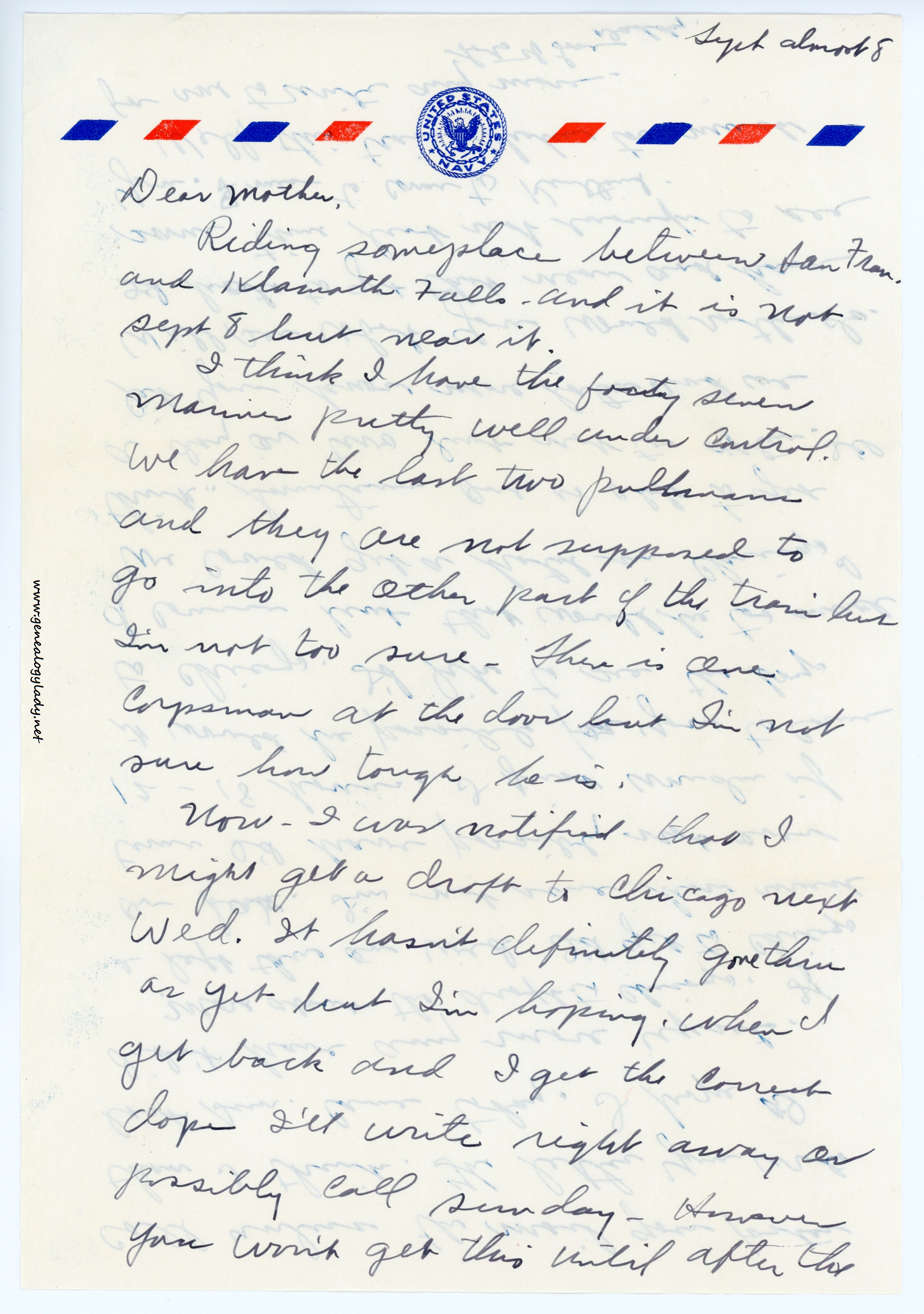 Three letters today – Sept. 18, 19, 20. Now maybe that the mail has started it will keep coming regular.