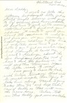 [page 2] I haven’t been to the ocean for days but if you want some more coral I have to go back. Fred promised his wife he would send her a necklace but he hasn’t done anything about it yet. Hope you got the one I sent. Some have bought that kind but there are none for sale here they were bought in Samoa. I have a few shells here now but none very good so when I get in the mood and have time I’ll run over. I also have some more gun shells for the boys. I do have some cat’s eyes. It’s a type of shell that comes from the tail end of a snail. The snail draws it in to complete its shells. These are I think very pretty and could be set either for ear rings or for a ring. I’ll send them home one of these days and you can do with them what you like. I don’t believe they are quite your color but maybe they are. You can decide that. I know Mark will get a kick out of the shells I’ll send to them. I’ll write when I send them. Must