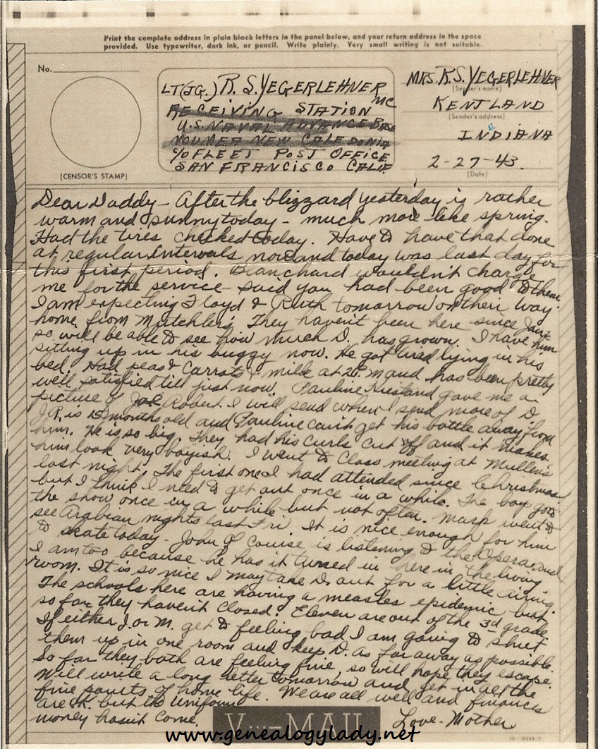 A letter came from your Mother this a.m. She says she isn’t feeling so well – I’ll enclose the letter. She sent us some red points.