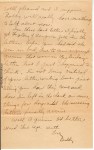 [page 3] He thought he would soon be back over here. Ralph is laying the brick for his hen house. Clarence has some of his soybean down. It’s been so cloudy and rainy can’t put them up. If we know you were at Kentland last Sunday some of us would of come up. I have my canning all done. We haven’t had any frost yet but it’s been pretty cool. I must get my dinner ready, want to go to town this after