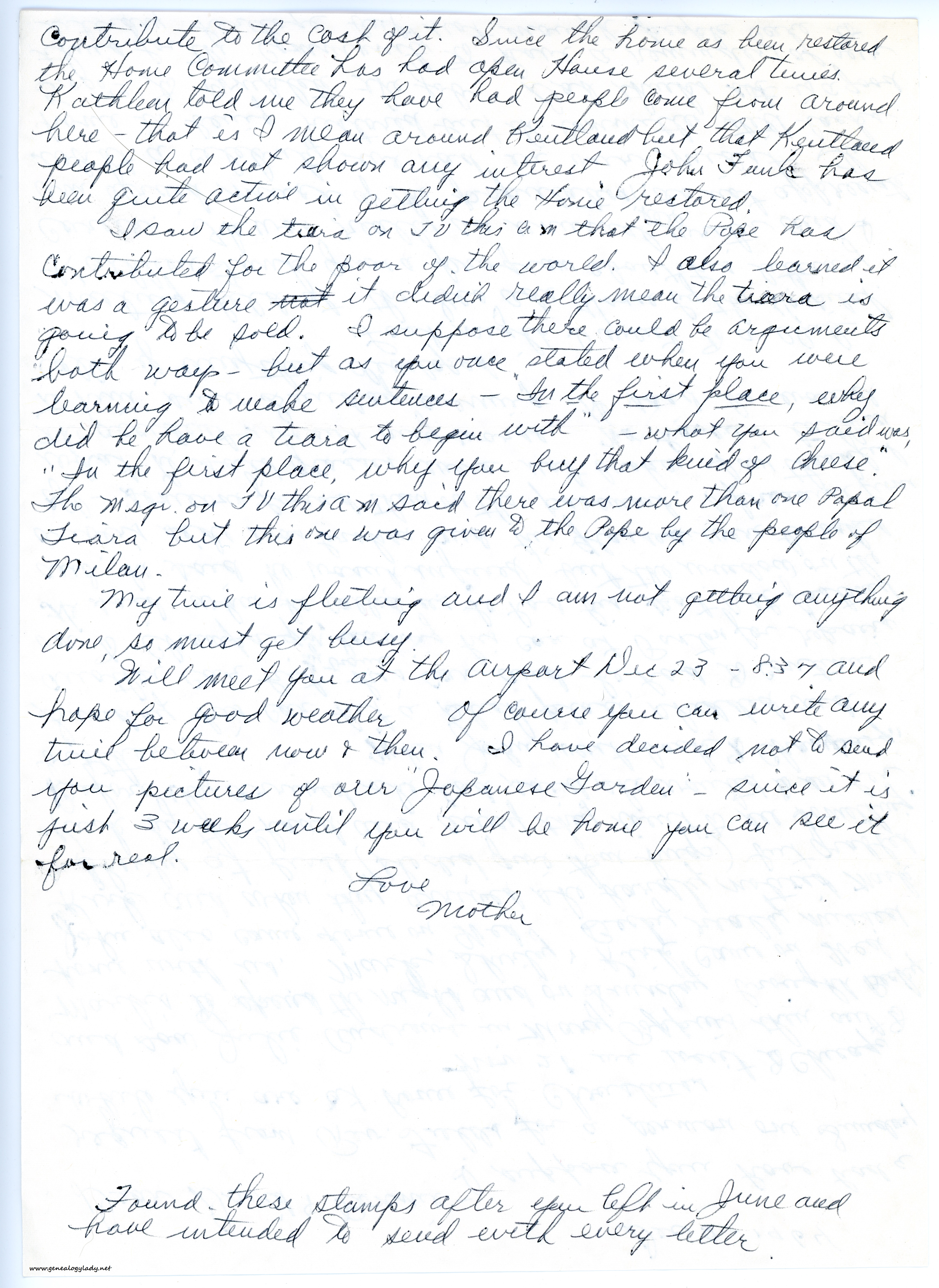 P.S. 1 If you want to come home during Christmas vacation, don’t let the expense of the trip keep you from coming. That could be our Christmas gift to you.