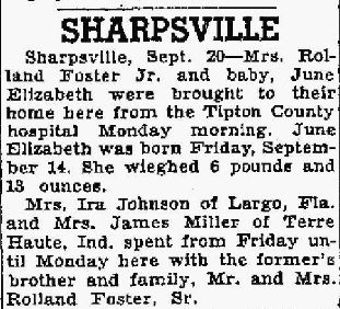 James E. Foster, 85 years old, died at 1 o’clock Thursday afternoon in Warren, Pa. Surviving are two sons, James of Indianapolis and Glenn of Cheyenne, Wyo: one daughter, Mrs. Gladys Yegerlehner of Kentland; two sister, Mrs. Cora Miller and Terre Haute and Mrs. Lizzie Johnson of Largo, Fla., and one brother, R. W. Foster of Sharpsville. The body will be brought to Cross Funeral Home where friends may call after noon Sunday and where services will be at 10 o’clock Monday morning. Burial will be in West York, Ill.