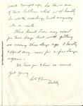 [page 2] thing I can say is for her to do what the Drs. tell her. You didn’t mention diet which I think is important – maybe she is on one, at least I think irritating foods should be out of her diet – & that includes – all forms of prepared cereal, all raw vegetables, coffee (That’s a bad one for her). Some tea would be OK, and of course milk is OK, if it doesn’t cause too much gas – In other words it is an individual problem – but I really shouldn’t be giving advice since I’m not in on all the information about the lab work etc – You won’t need to bother about sending the details because it’s too long before I could get any info back to you.