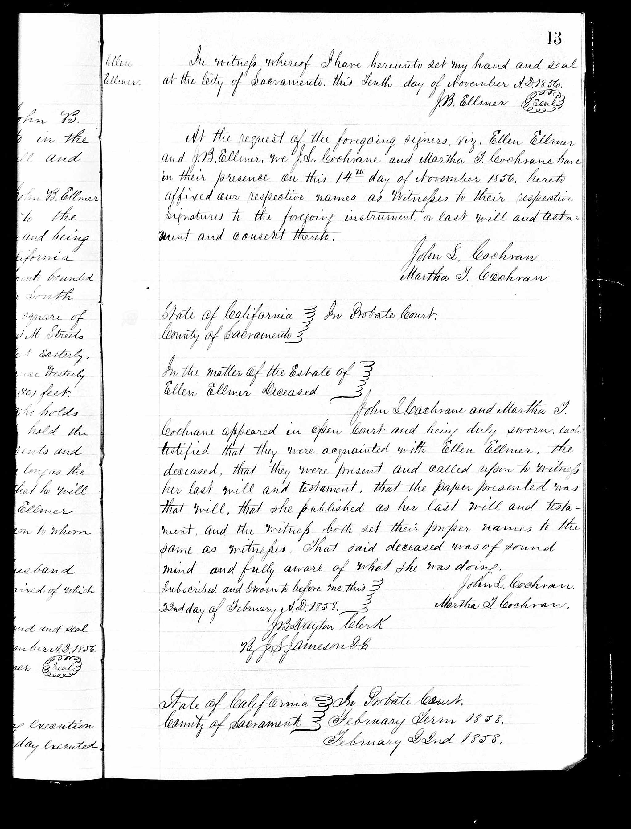 at the City of Sacramento this Tenth day of November A.D. 1856.