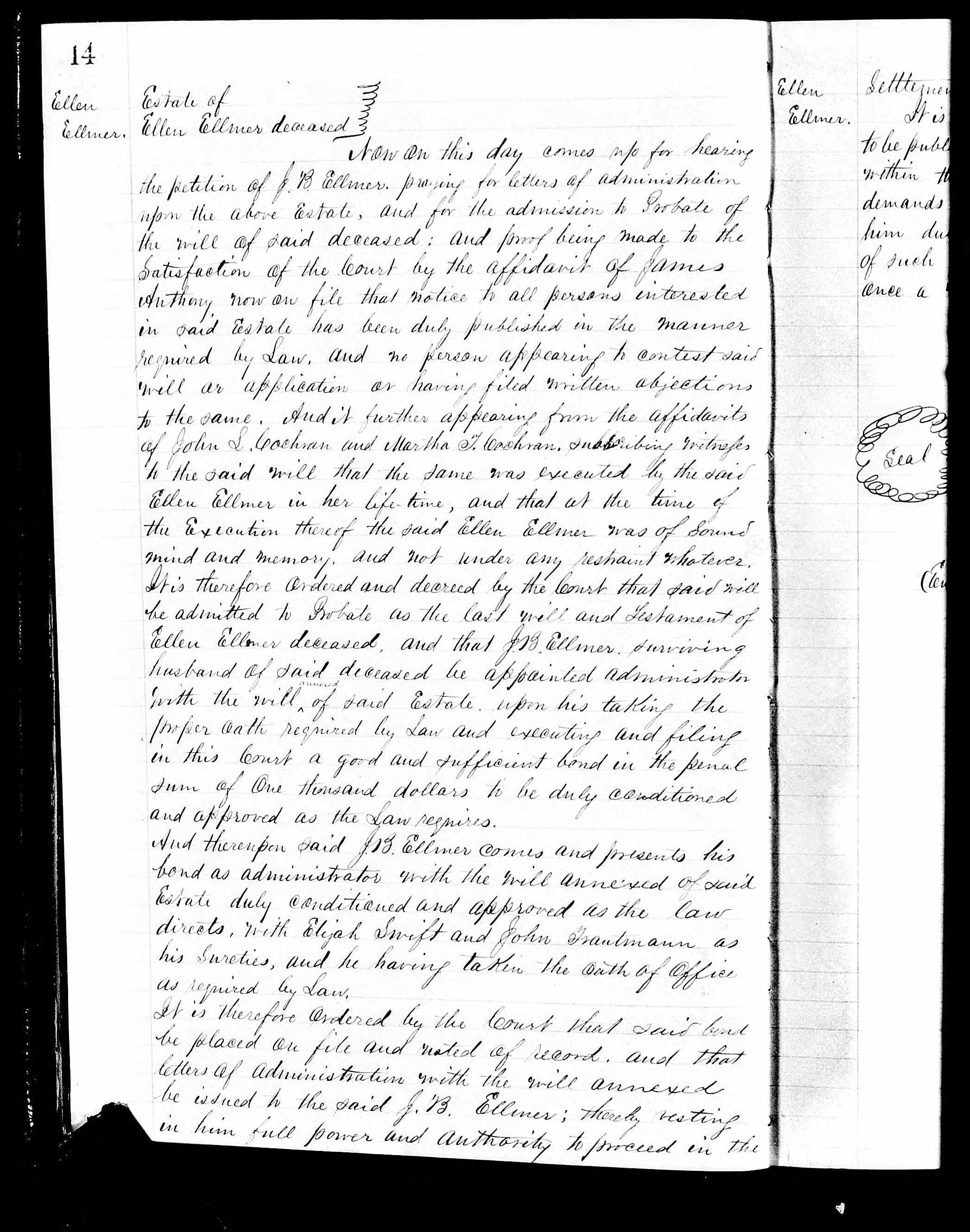 Ellen Ellmer deceased, and that J.B. Ellmer, surviving