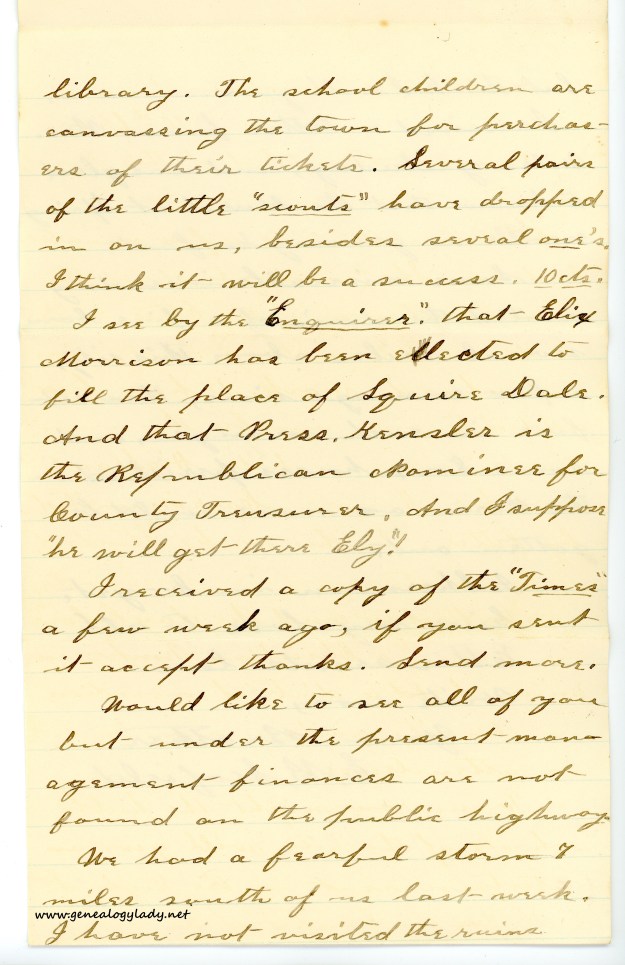 Letters from home have made the transition to life in Indiana easier. We nearly lost everything in Connecticut, and then in New York, so Father took a big risk moving us here. Just when we thought we had escaped our misfortunes, Seeley died, then Father, and Eliza, in quick succession. The swampy river bottom contained tainted water and infected mosquitos. Mother was on the verge of packing the rest of us up and returning east when a letter arrived from my grandparents. Their encouragement convinced Mother to stay and rebuild our lives here. The first few months were rough, but things are definitely improving.