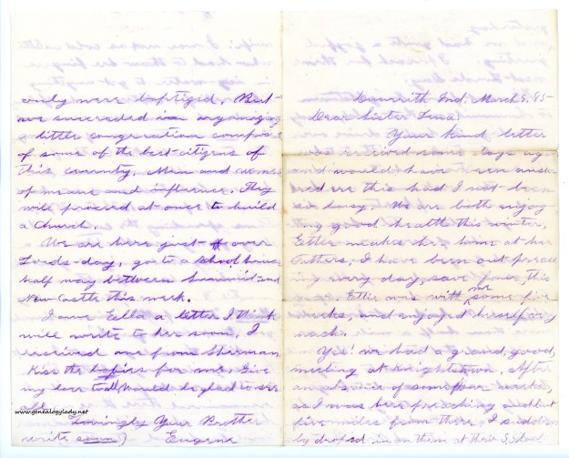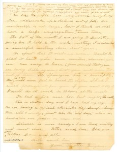 We finally received your letter dated the 16th of February last week. The mail service seems to be improving as this letter arrived more quickly than the last. Everyone here is fine. Mother sends her love to both you and Uncle Jonathon. Mary adds hugs and kisses. We were sorry to hear of everyone’s illnesses and hope all are better by now.
