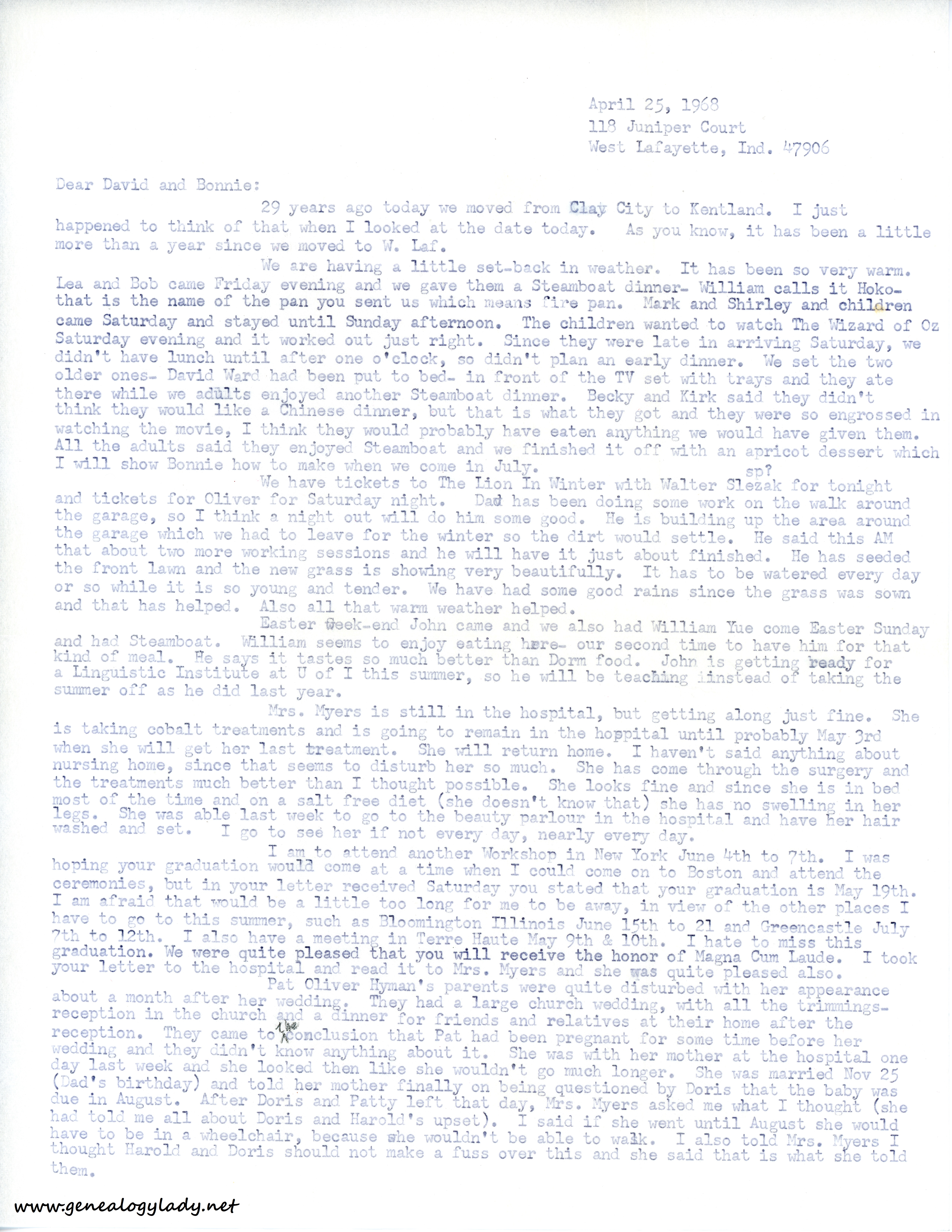 I have been so busy with the above mentioned meeting, have had to neglect my desk. I have worked here for a while this evening, writing checks and just getting things cleared off my desk. Next week will also be a busy one. Have to go to Geneva Center for a meeting on Wednesday, then at 6 o’clock on Thursday morning start for Wichita. A friend is going to drive to Indianapolis and we are going to fly from there. Since she is driving, I am going at the time she wants to go. If I didn’t want to get up that early, I could have Dad take me to the airport, but after I get to Wichita, I can sleep. I am rooming alone, so will be alone and not have to talk to someone. The first session doesn’t begin until 1:30, so I will have time for a good nap. (Church Women United)