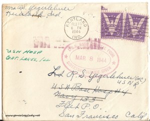 I am forwarding a letter from Geo. Wingfield – why don’t you write him and ask him to stop off in Liberty and see us while he is on his way to Chicago? Here is another v-mail from Lentz – am trying to sew, so will sign off.