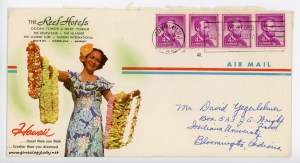 [page 2] Kabuki Theatre. John had said to see it. It is the old traditional play. All the actors are men – but some dressed like women. I wished we could have understood what they were saying. For some reason we didn’t get a program. We met a man from U.S. who was on plane across the isle from us. He is either Japanese or Chinese and is staying in this hotel. He lives in U.S. but is traveling here on business. We have talked to him several times. We have seen a few people who are not Japanese but when we were in store yesterday we, as far as I could see, were the only non-residents present. We leave here Sun. a.m. for Kyoto.